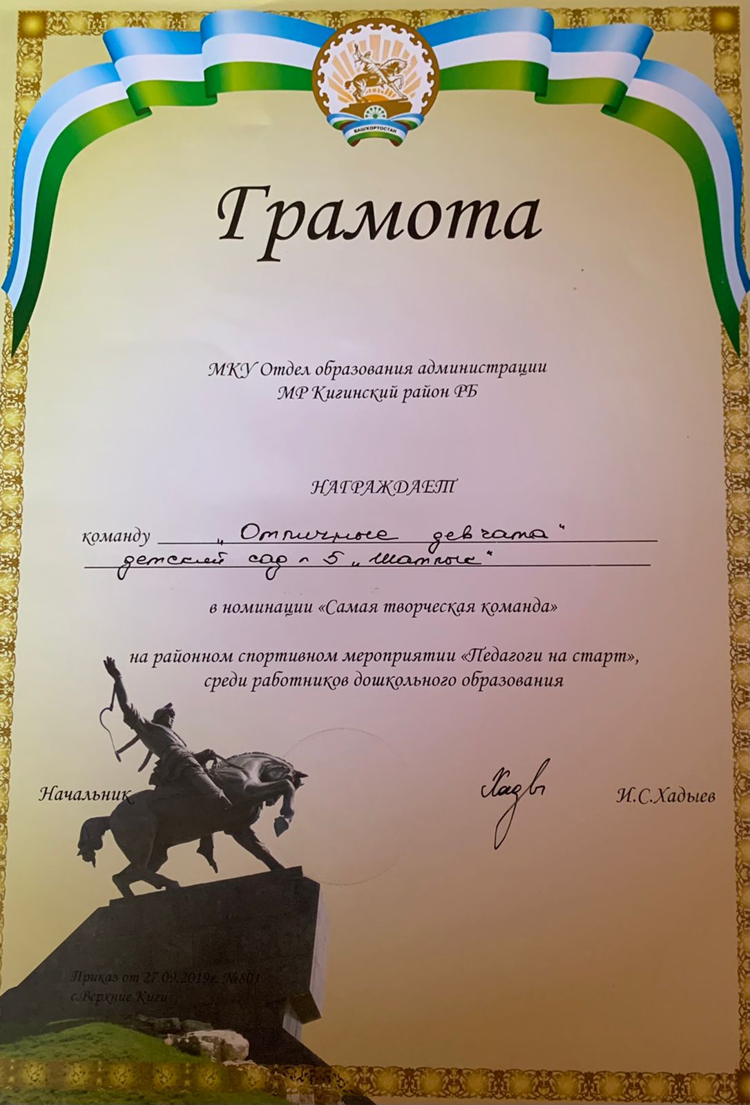 приказ №801 от 27.09.2019