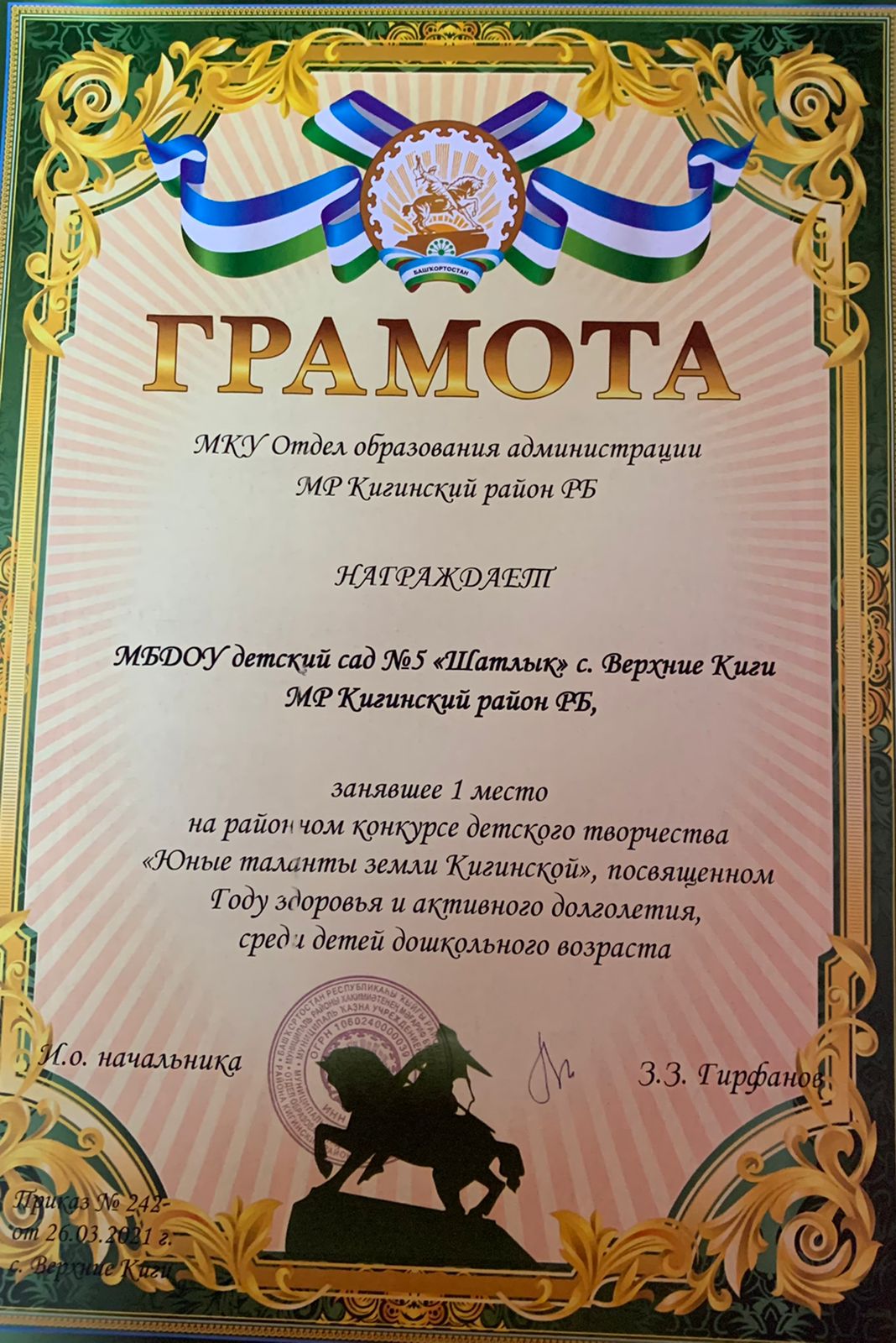 И.о. начальника З.З. Гирфановприказ № 242