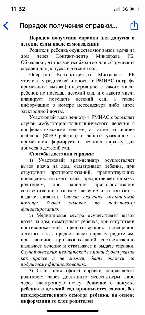Уважаемые родители! Для посещения дежурной группы детей работающих родителей, необходимо получить от участкового педиатра справку! Просим ознакомиться с порядком получения данной справки